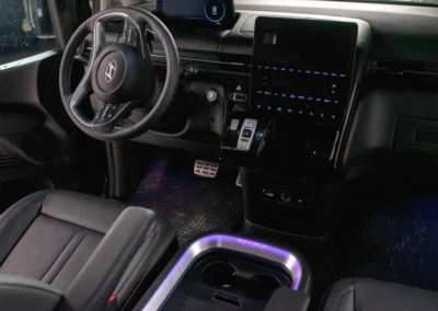 - Biztonság mindenekelőtt: A Staria Luxury fejlett biztonsági rendszerekkel van felszerelve, mint például a sávtartó asszisztens, az adaptív sebességtartó automatika, a vészfékasszisztens, és a holttérfigyelő. Mindezek garantálják, hogy minden út biztonságosan teljen, függetlenül attól, hogy milyen távolságot teszel meg.